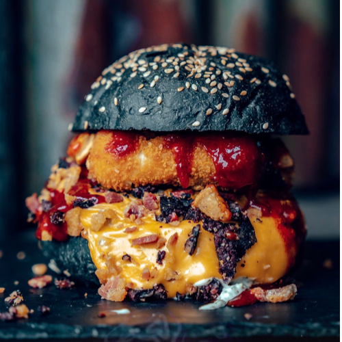 £14.50Charcoal seeded Bun, Fuel's Burger Patty, Garlic Kiev Mayonnaise, American Cheese, Jalapeño Poppers, Black Pudding and Bacon Crumb, Pork Scratchings & Hot Sauce